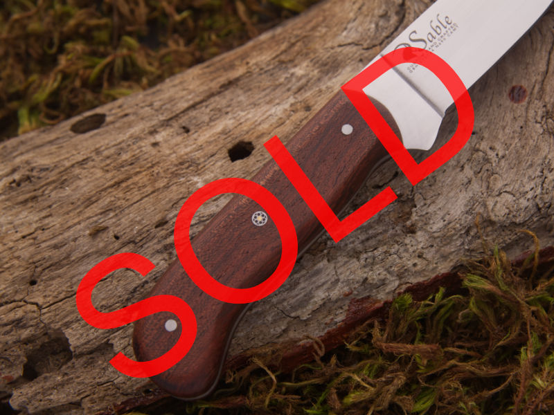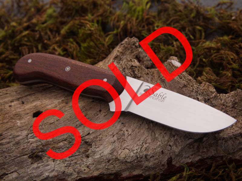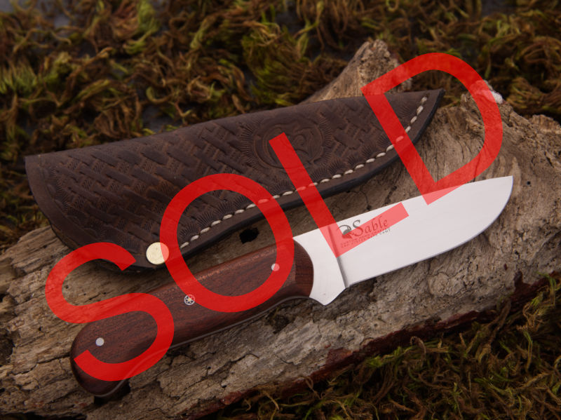 Drop point hunter in the classic style. The slightly lowered point aids in preventing the piercing of the stomach or intestines of the animal while field dressing. The other subtle feature of the design is how the sharp edge drops away from the line of the hand to increase the cutting angle and make the knife cut more efficiently. The handle is shaped to fit your hand like a glove. Optional wooden gift/presentation box with sliding lid.