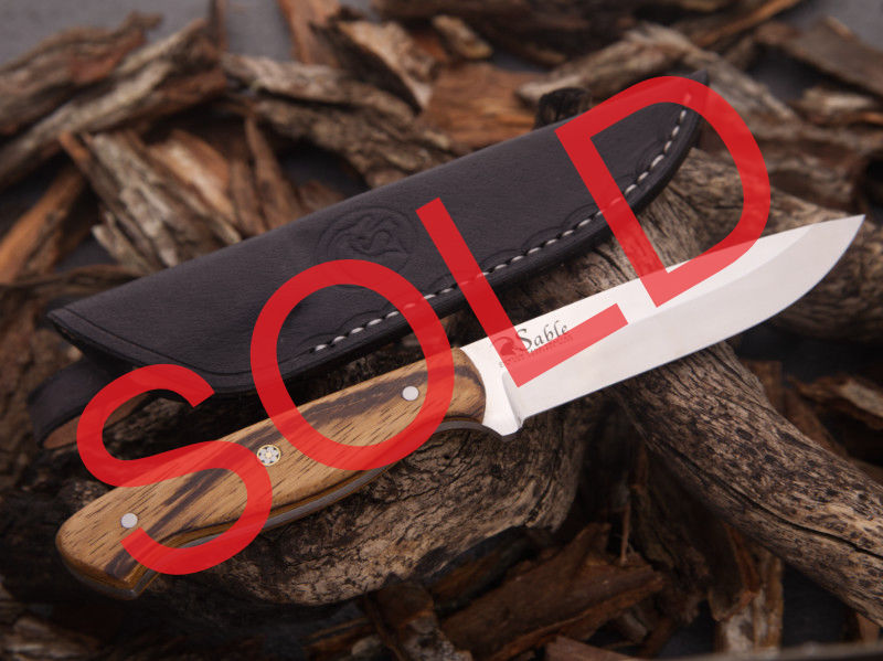 Clip point hunter. This is quite a long knife with a 3.5mm spine, making it very robust. There’s more than enough handle on this one for very big hands. This model has been discontinued.