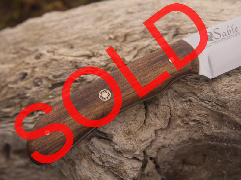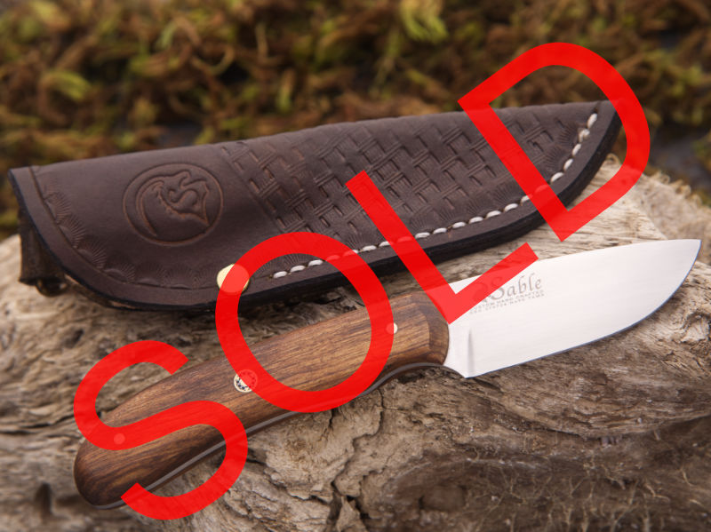 Drop point hunter in the classic style. The slightly lowered point aids in preventing the piercing of the stomach or intestines of the animal while field dressing. The other subtle feature of the design is how the sharp edge drops away from the line of the hand to increase the cutting angle and make the knife cut more efficiently. The handle is shaped to fit your hand like a glove. Optional wooden gift/presentation box with sliding lid.