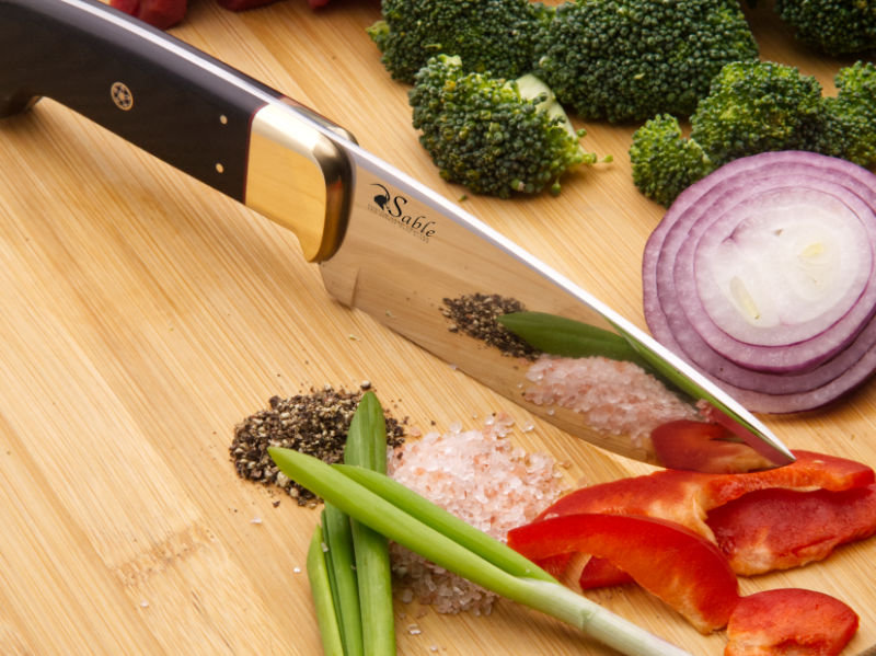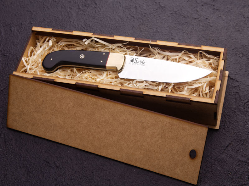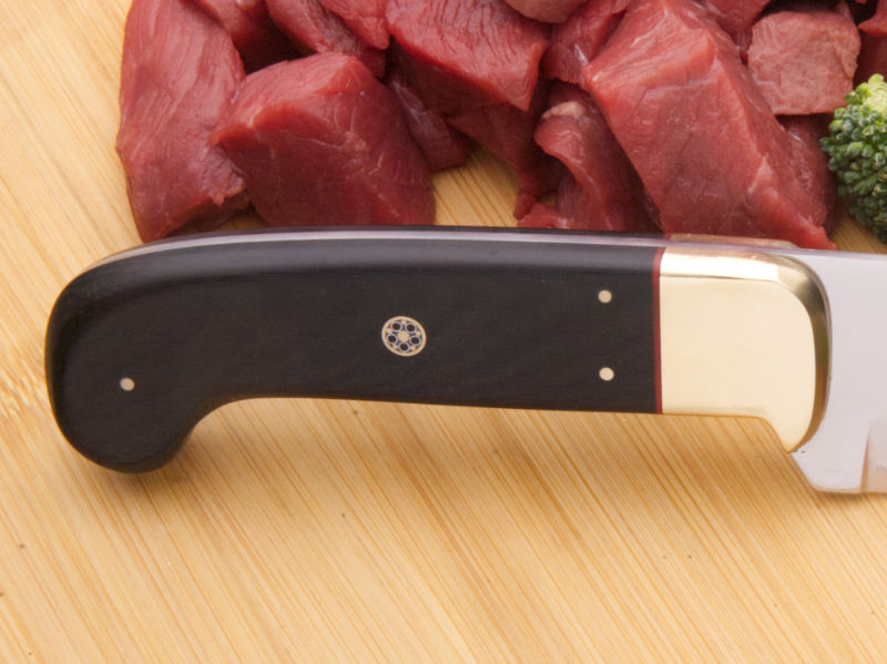 This is a medium-sized chef’s knife, equally at home in the kitchen or at the barbecue fire. The sturdy blade is designed to cut effortlessly while the handle is made to fit your hand like a glove.